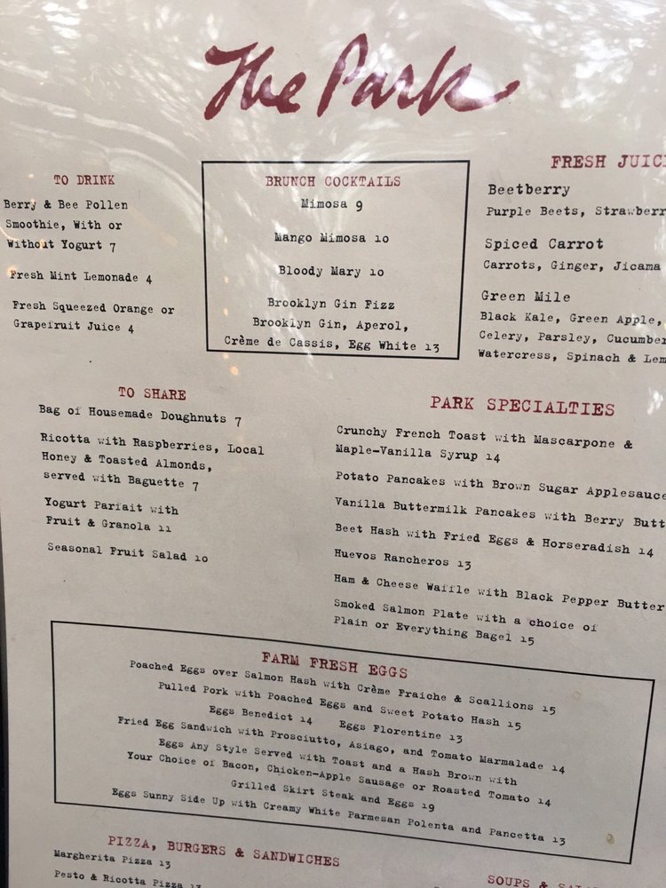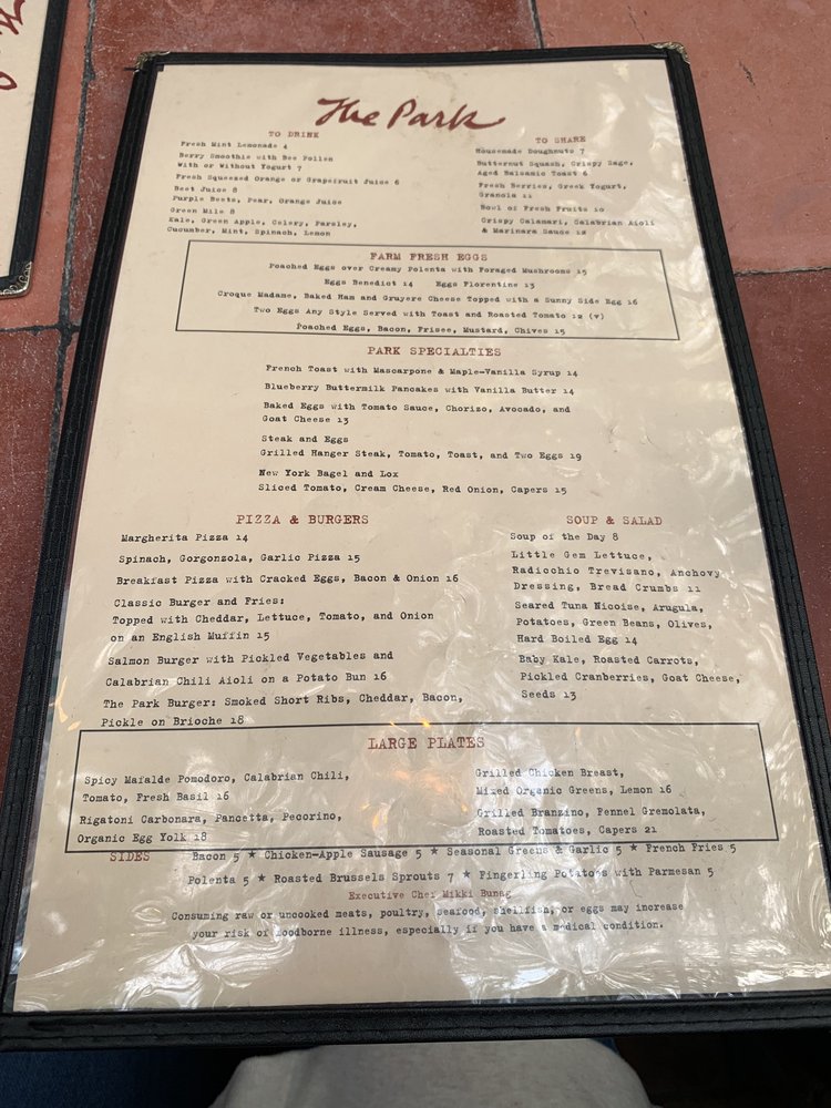 The Park Menu